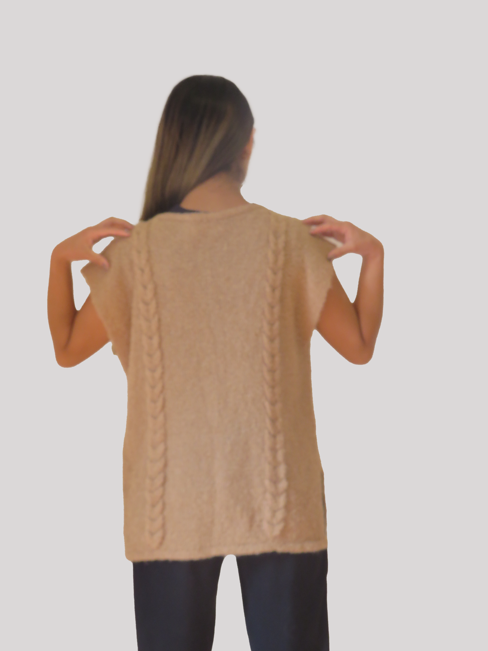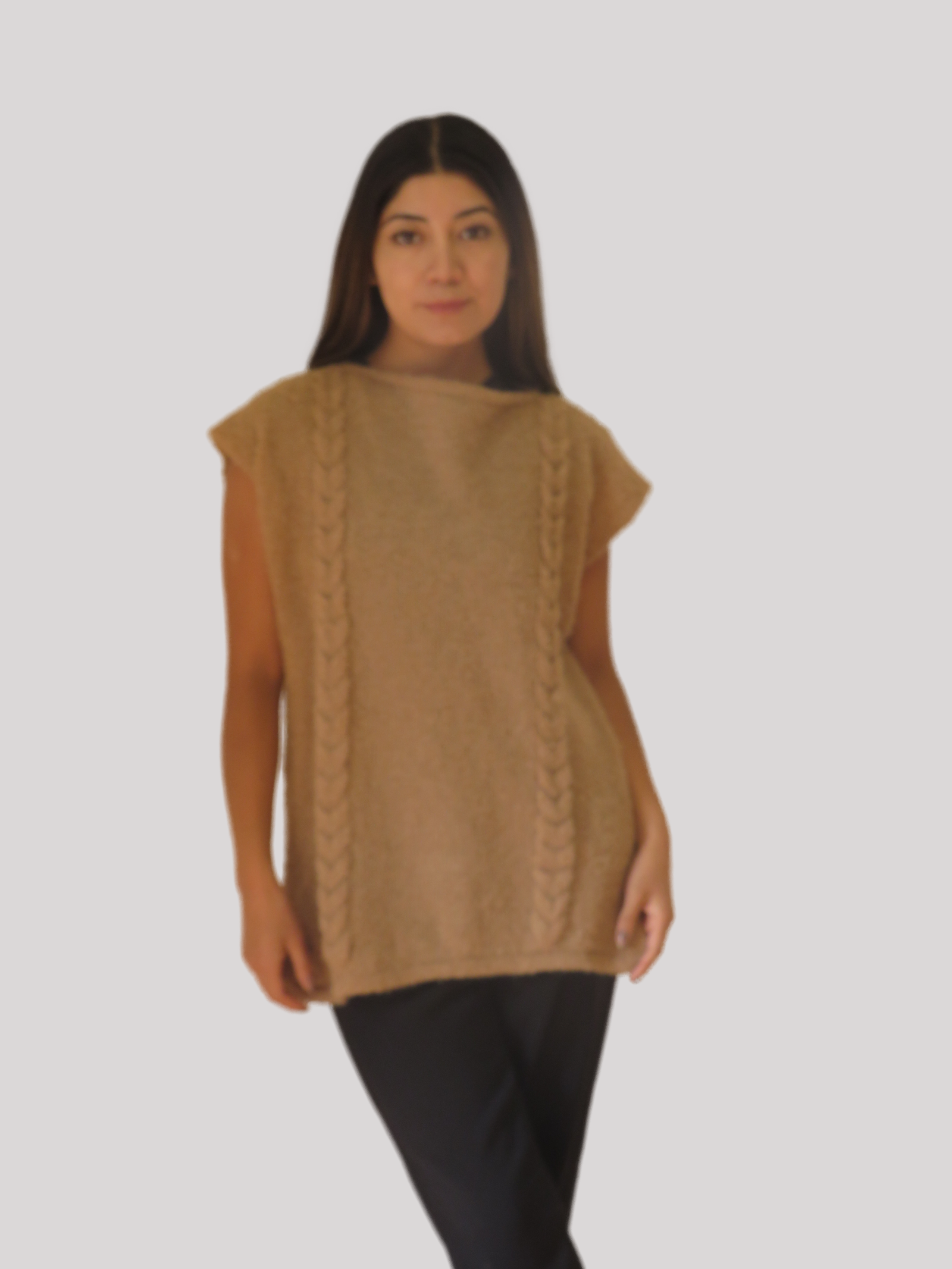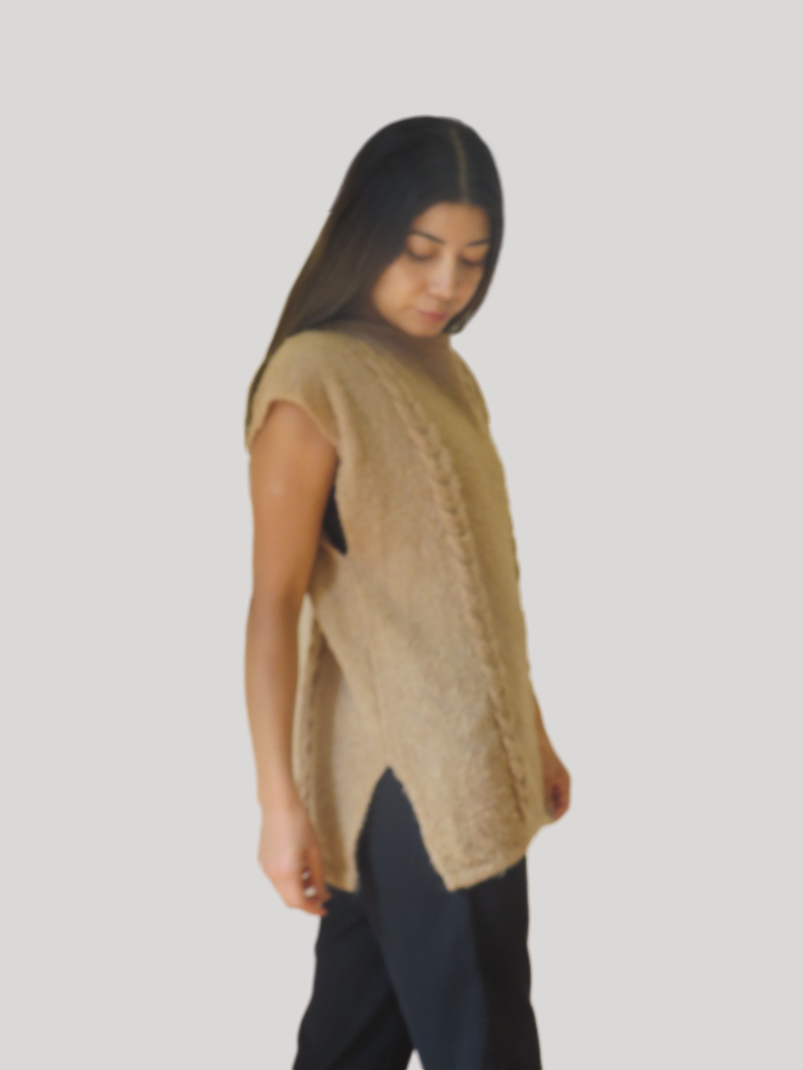 Una prenda cuidadosamente tejida con técnicas artesanales en un diseño innovador en fibra de alpaca