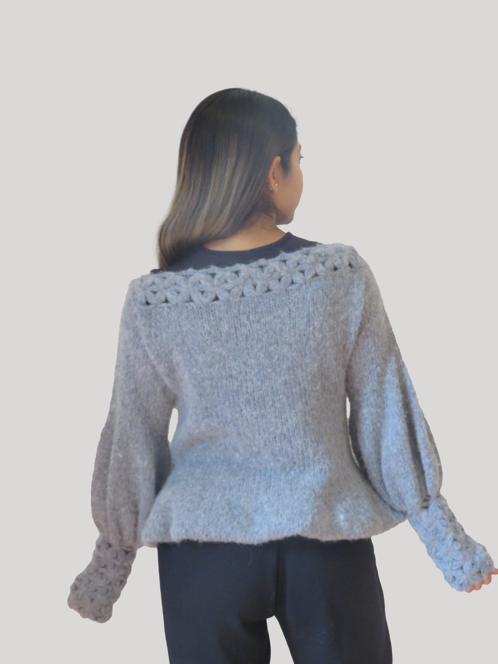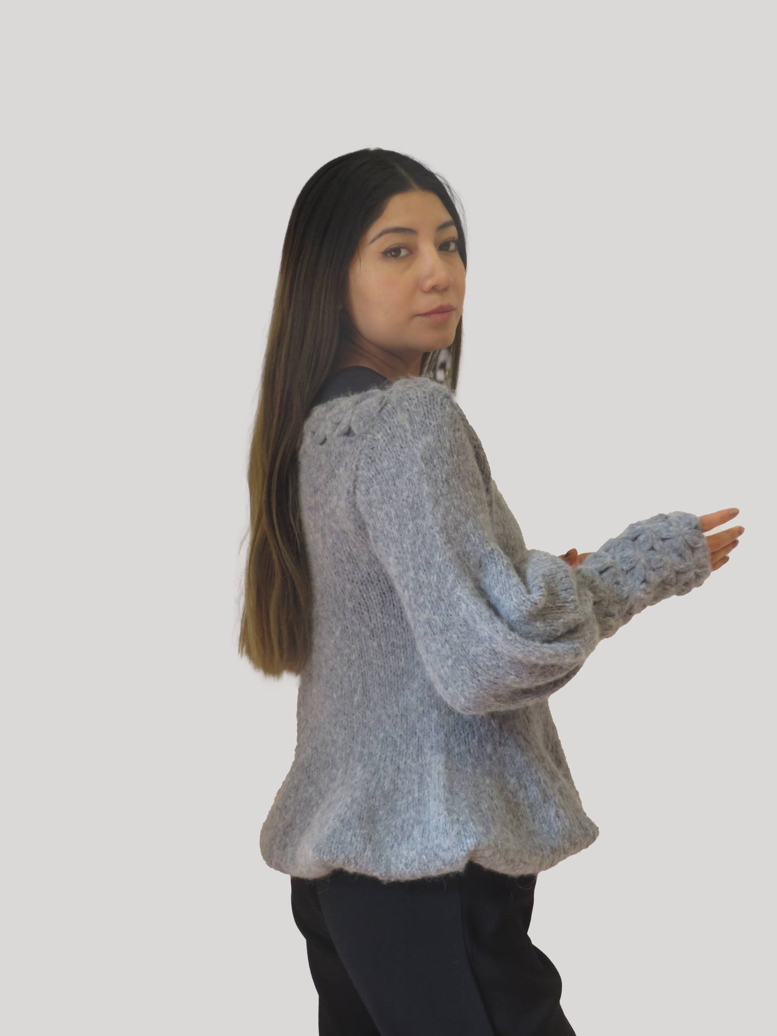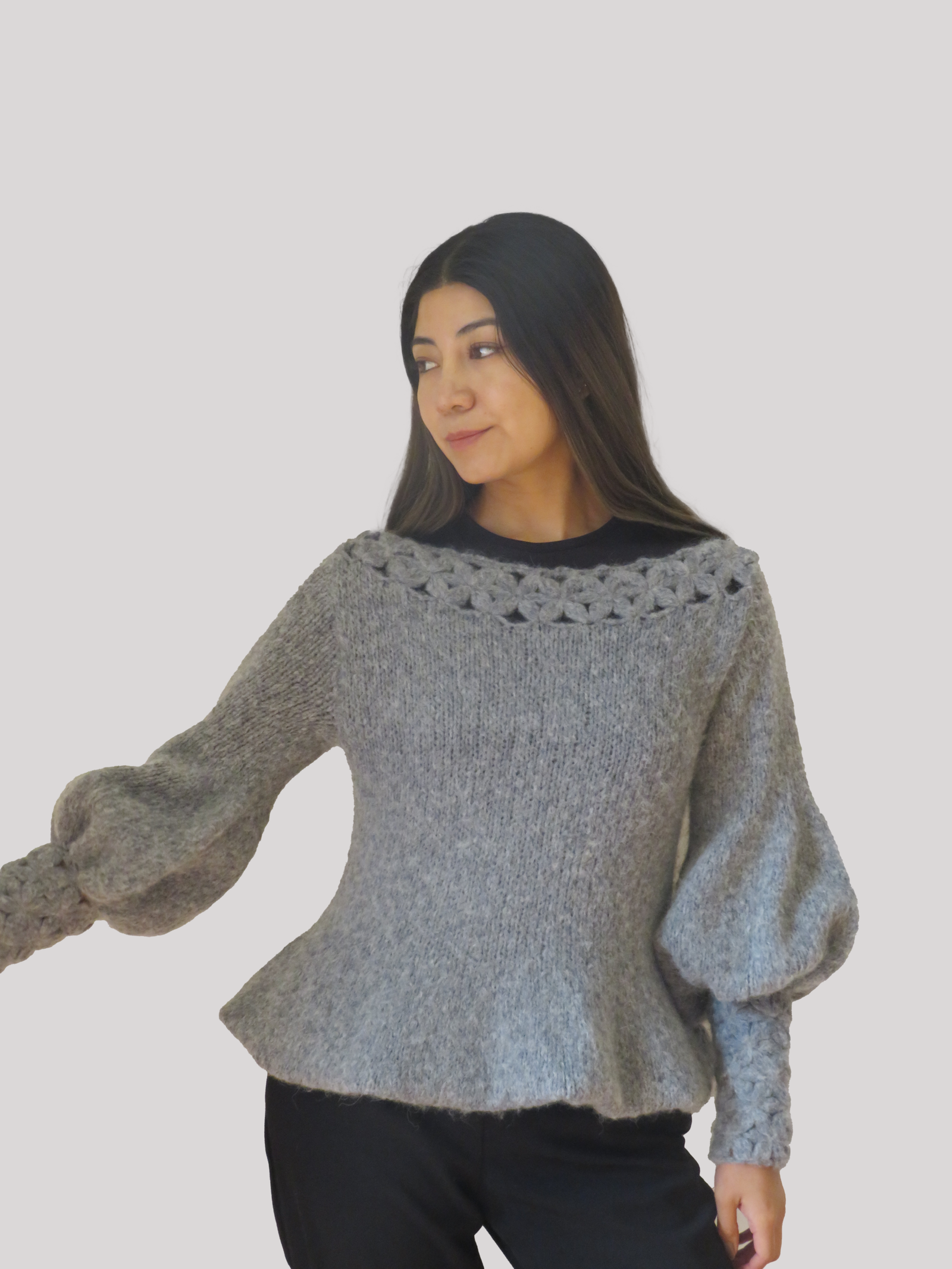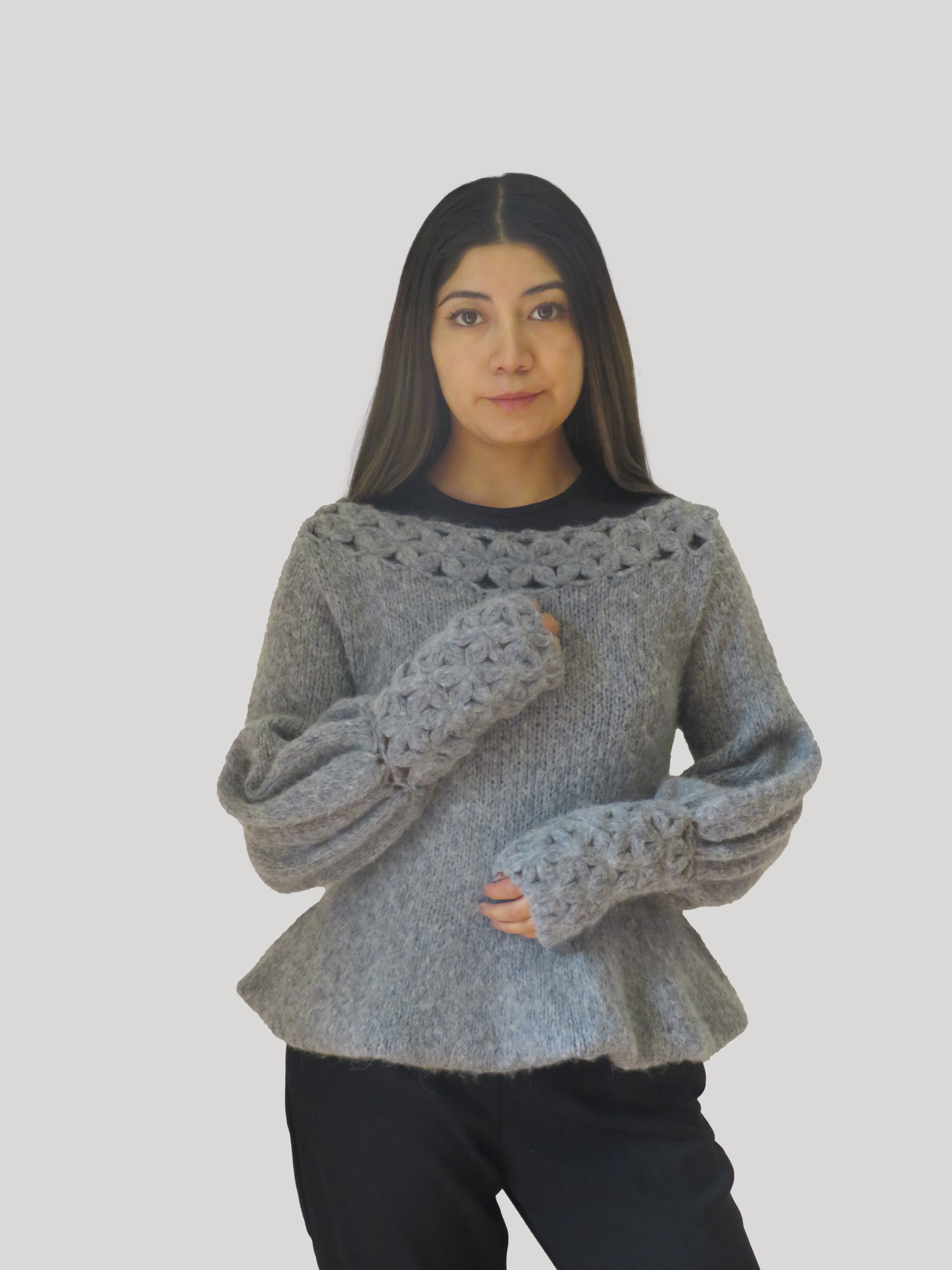 Una prenda cuidadosamente tejida con técnicas artesanales en un diseño innovador en fibra de alpaca