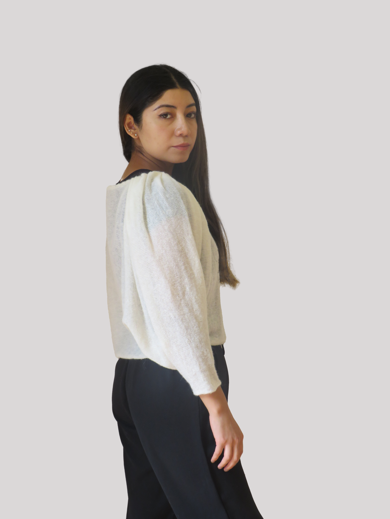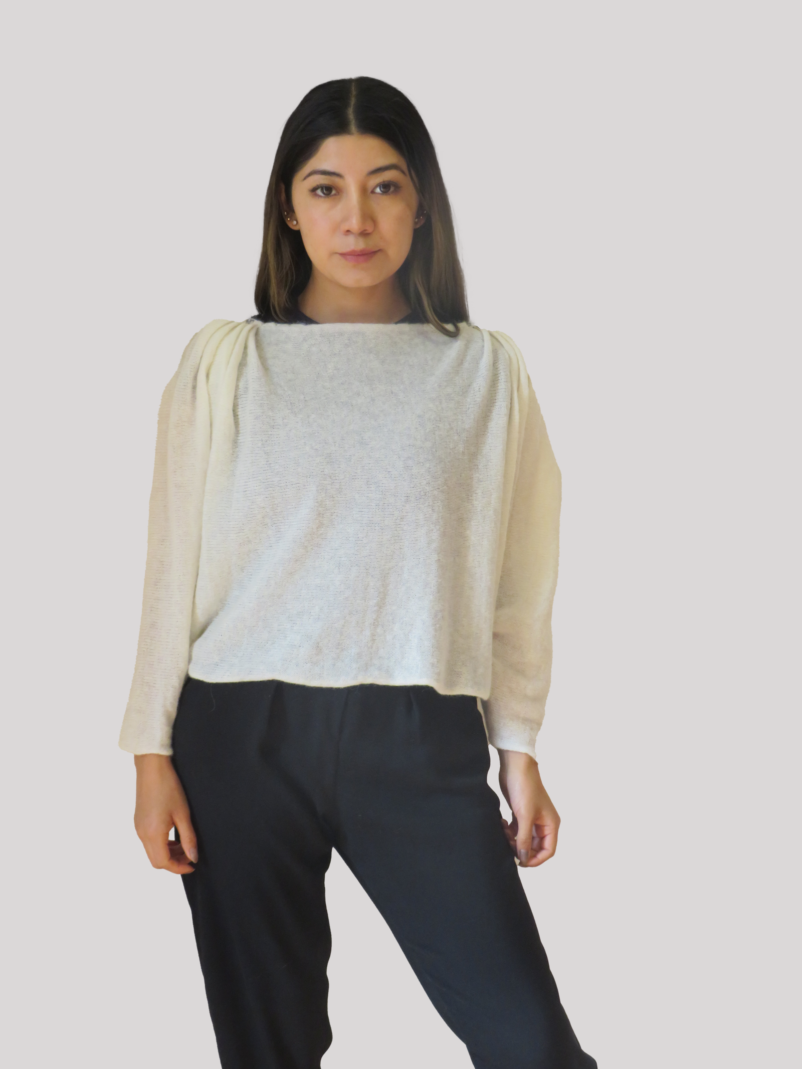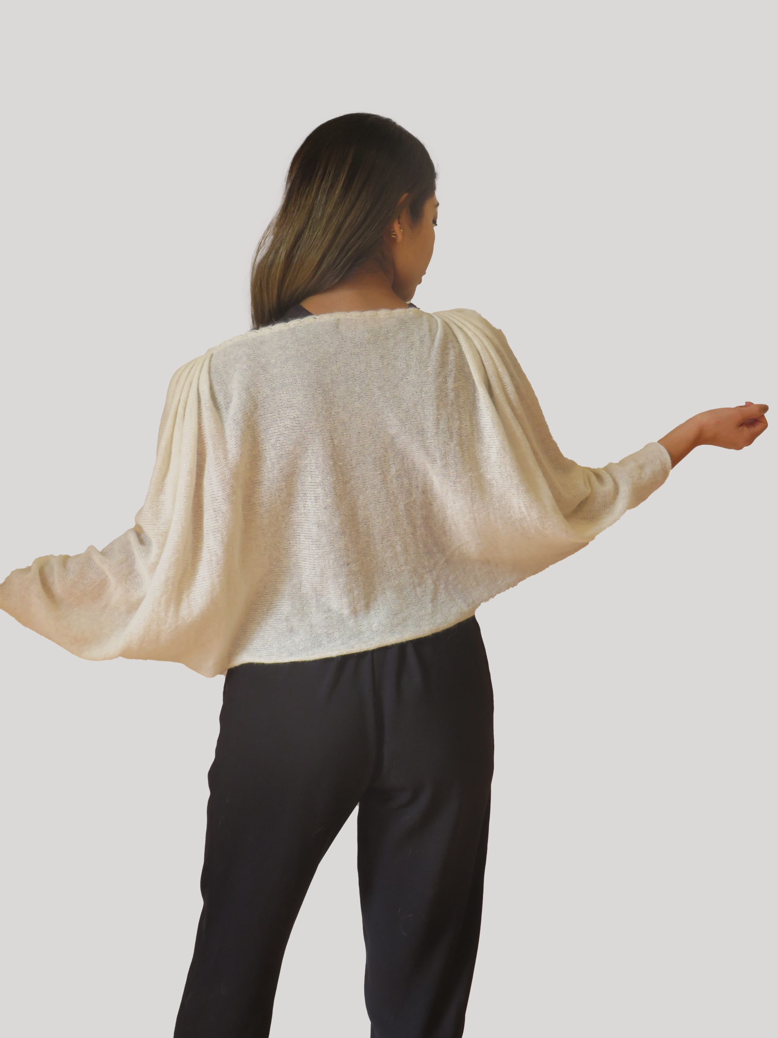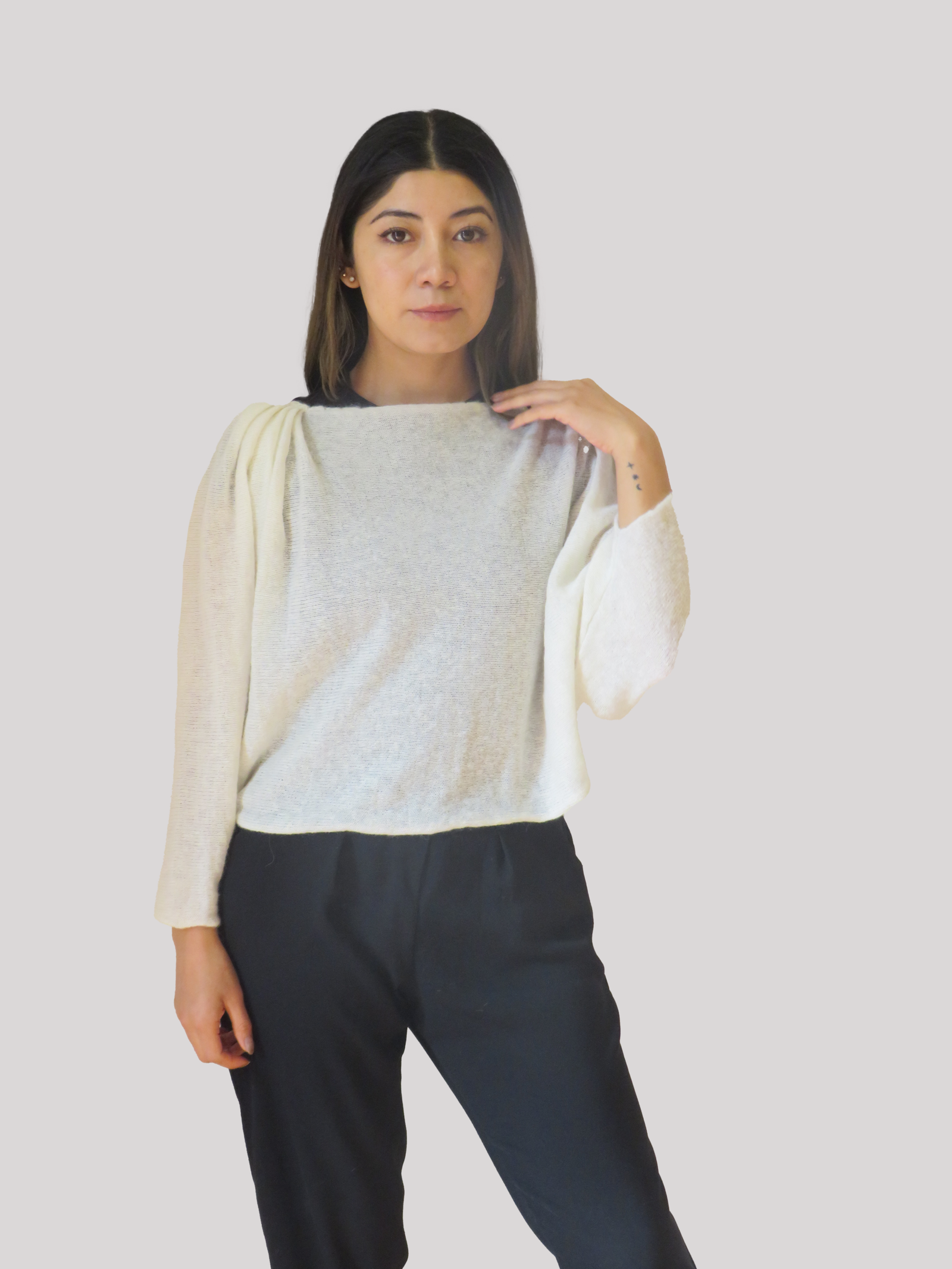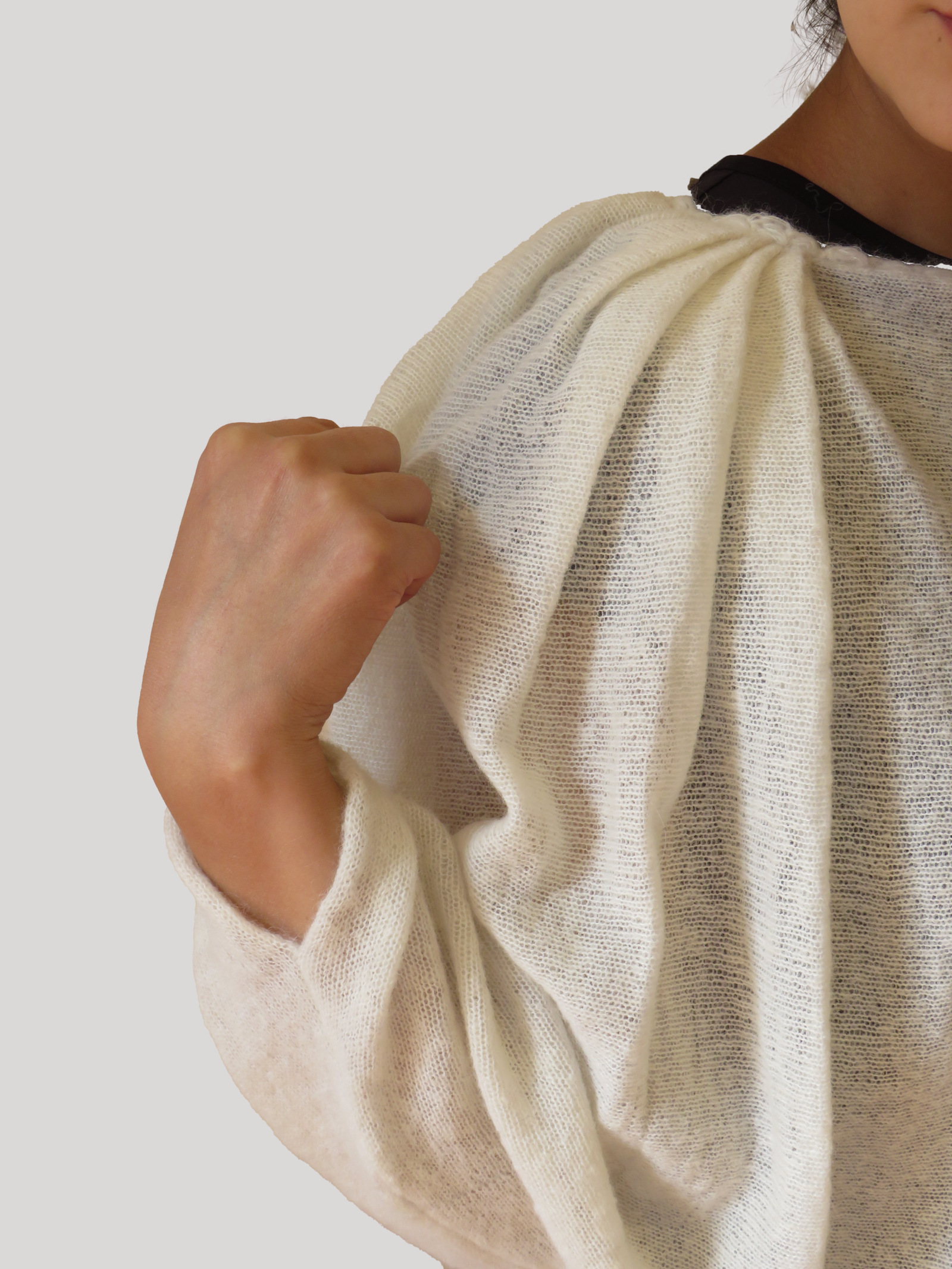 Una prenda cuidadosamente tejida con técnicas artesanales en un diseño innovador en fibra de alpaca