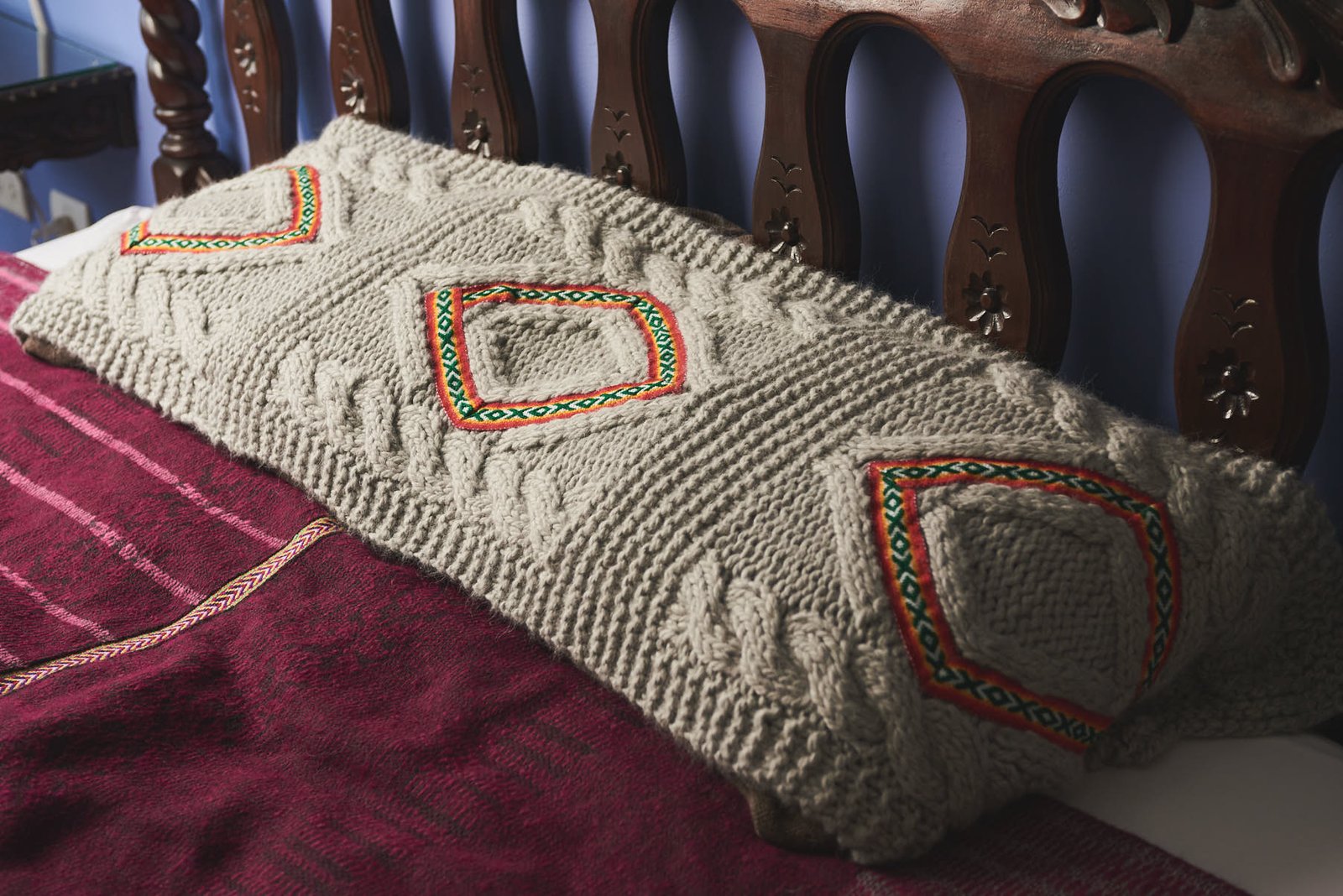 El pie de cama PUÑUY, tejido a mano en suave fibra de alpaca, envuelve el descanso con abrigo y elegancia natural. Su textura cálida y liviana invita al confort, transformando el sueño en una experiencia de serenidad. Cada hilo refleja la dedicación artesanal y la esencia apacible de los Andes.
