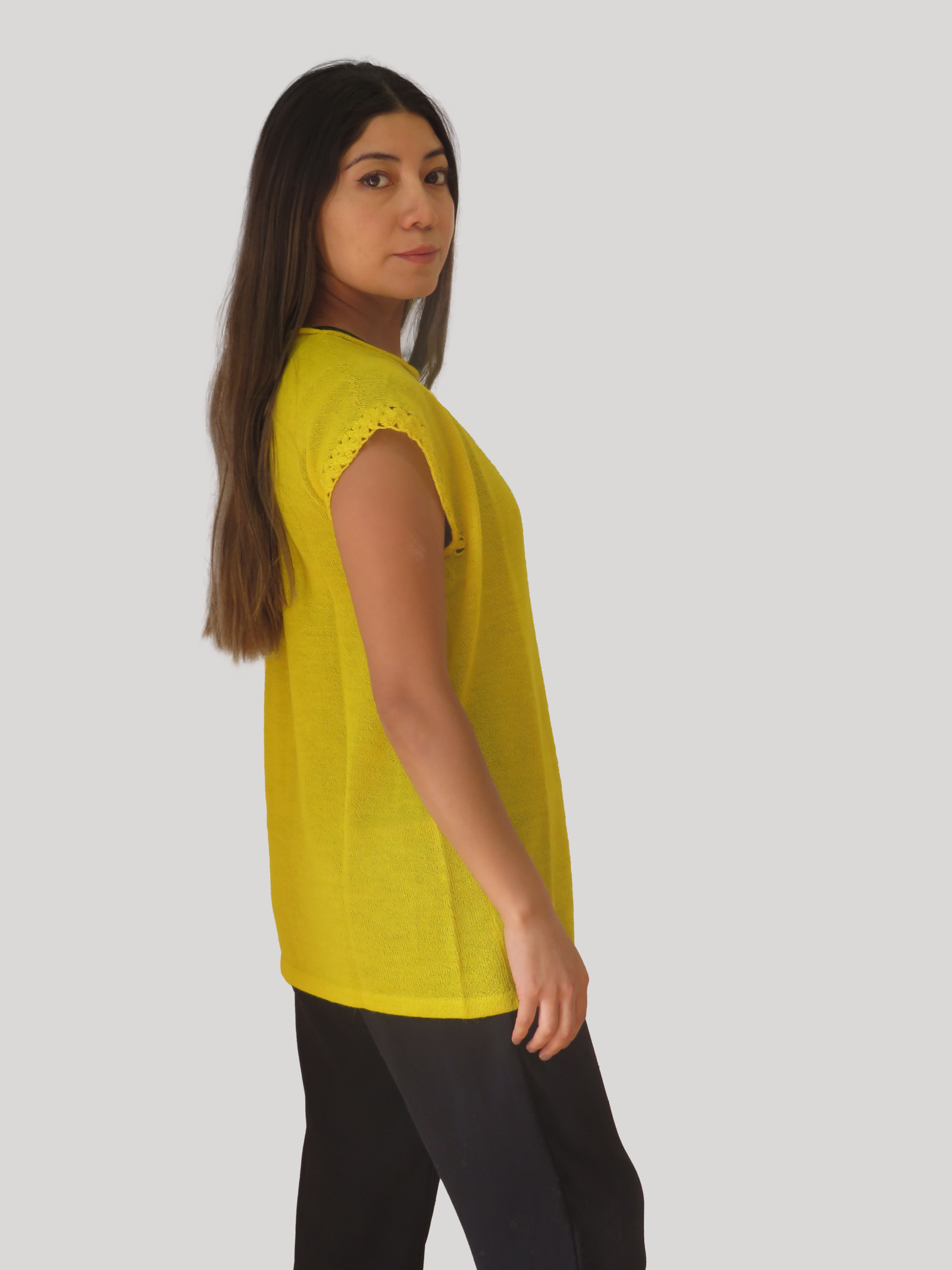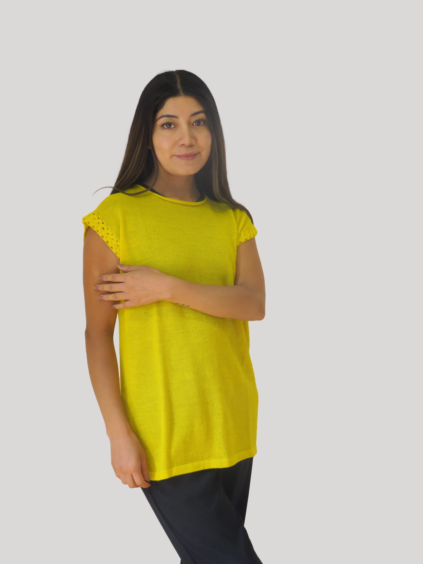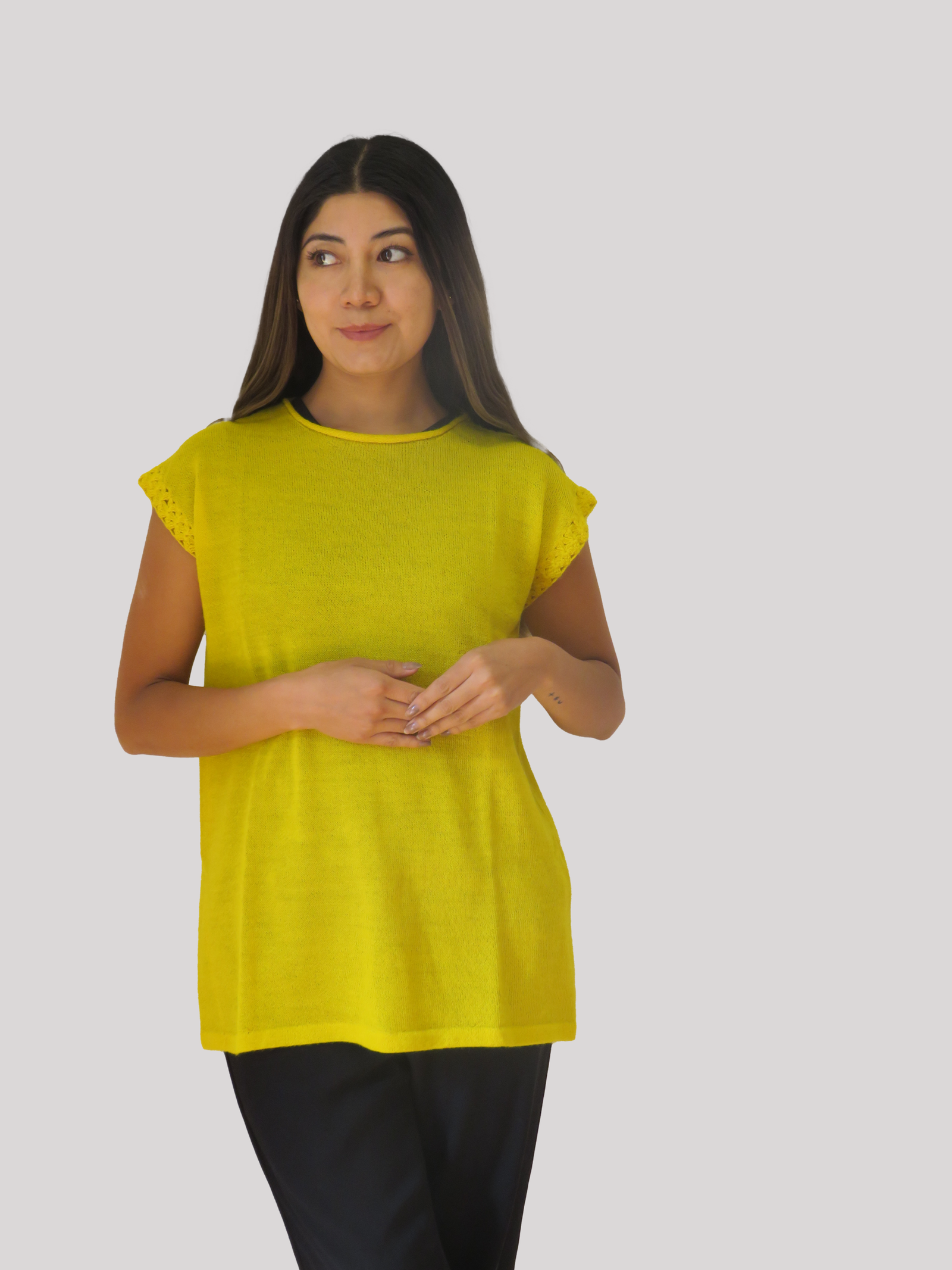 Una prenda cuidadosamente tejida con técnicas artesanales en un diseño innovador en fibra de alpaca
