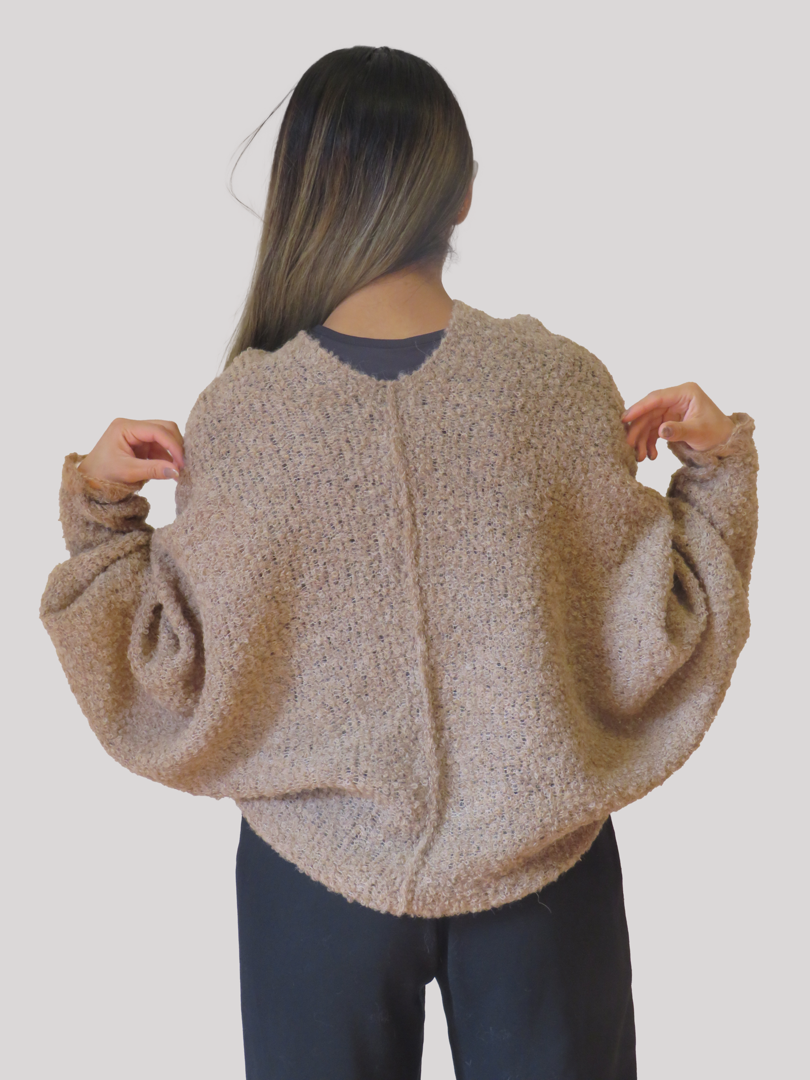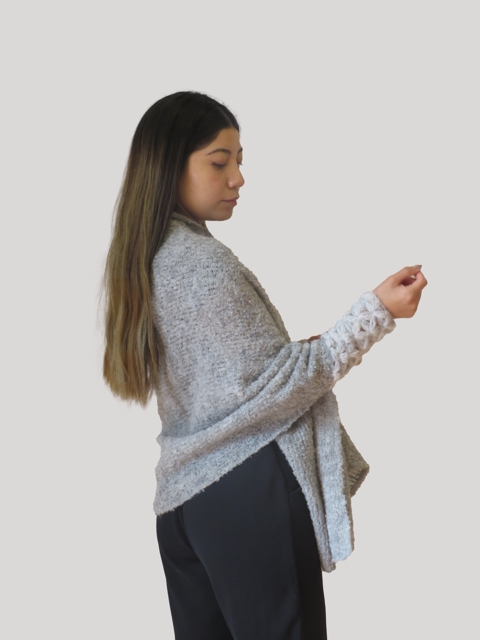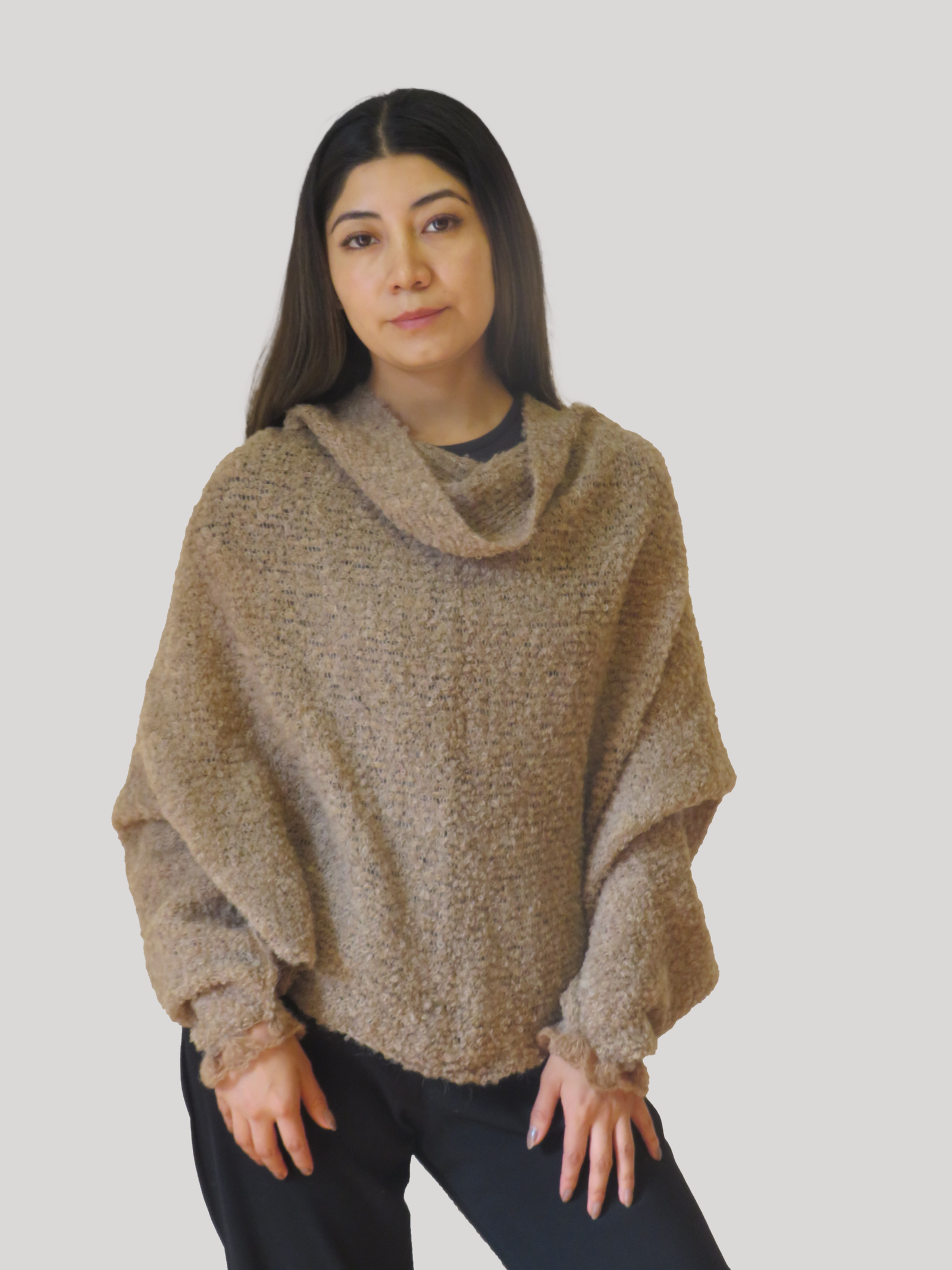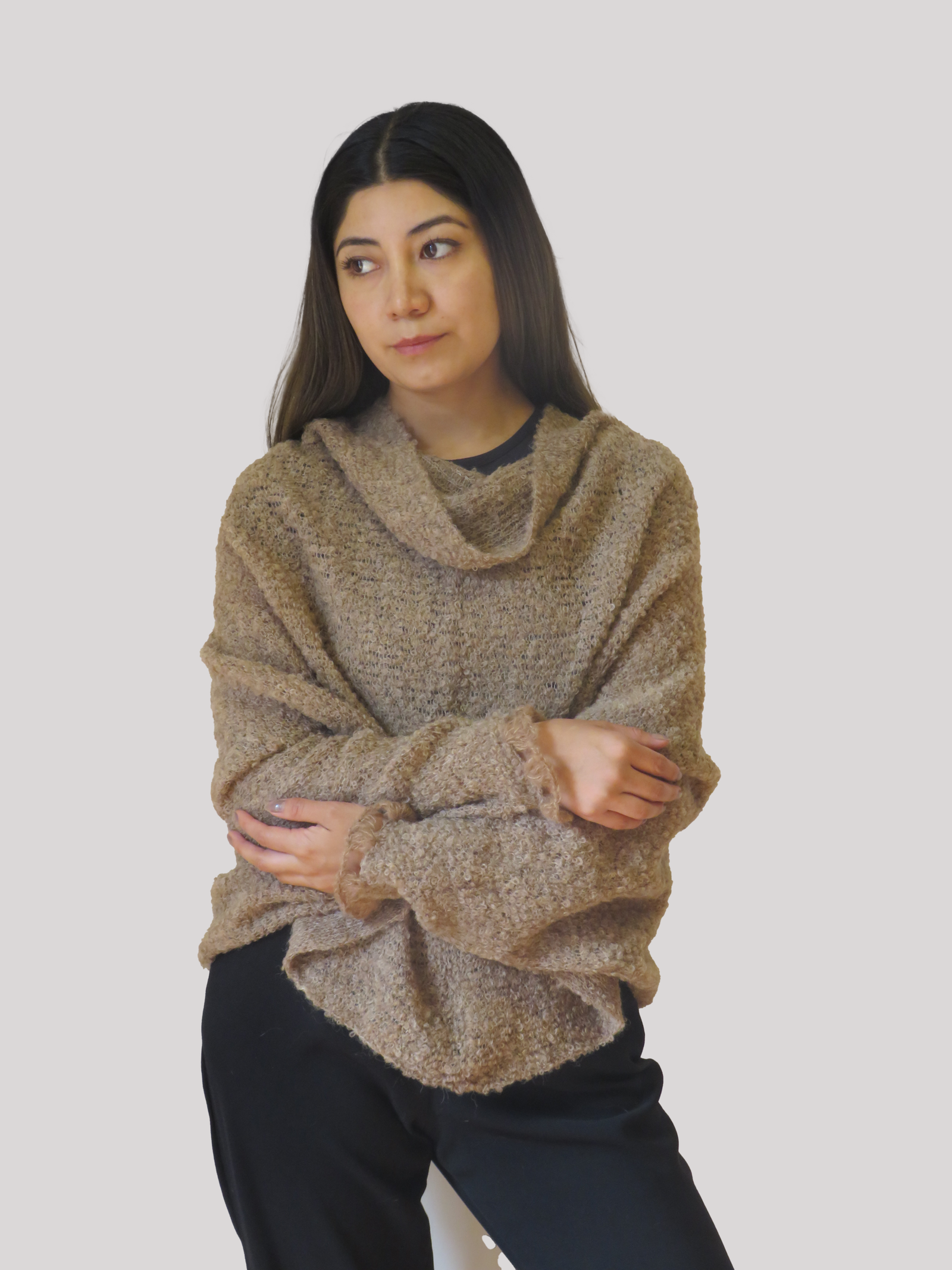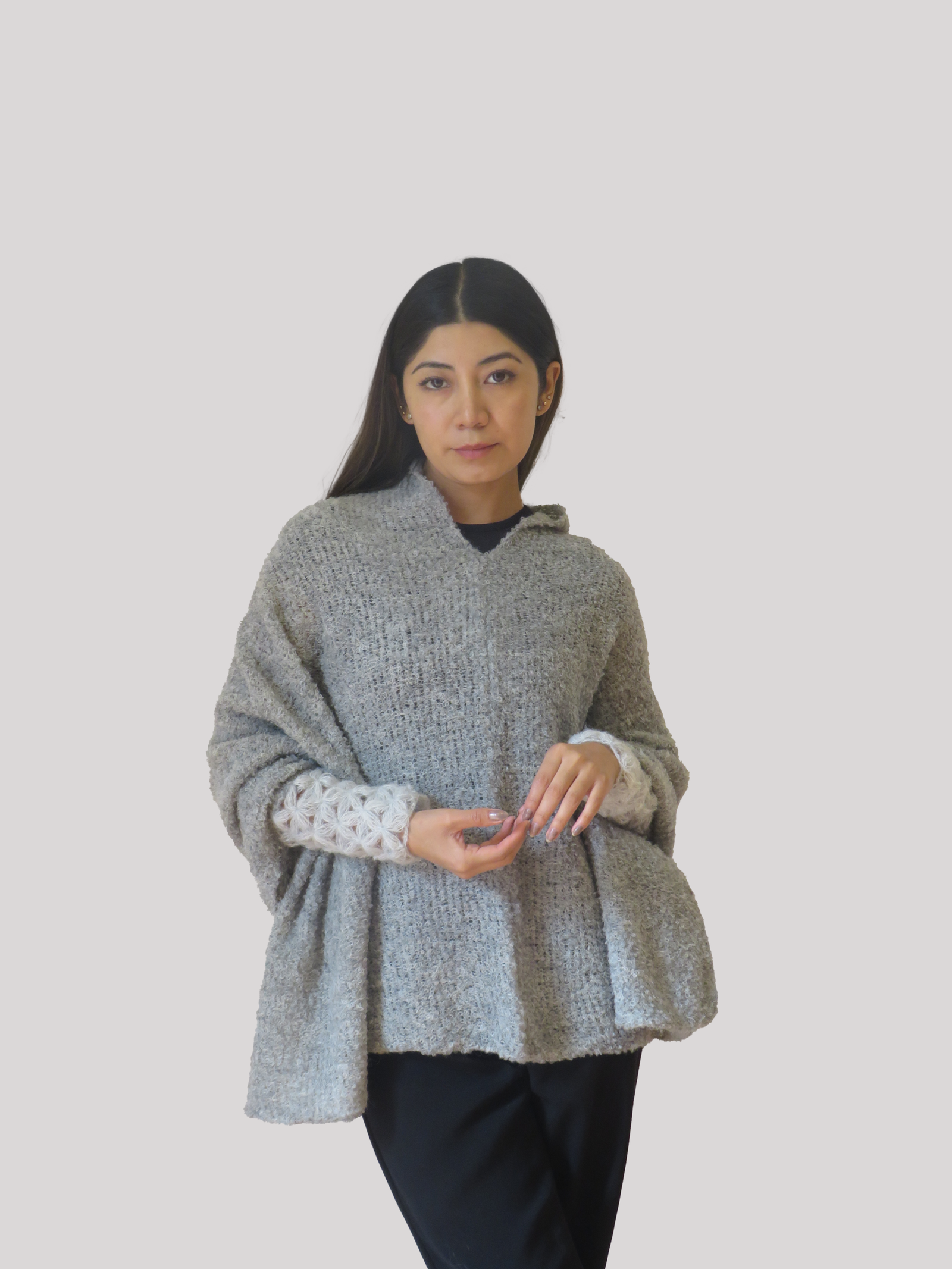 Una prenda cuidadosamente tejida con técnicas artesanales en un diseño innovador en fibra de alpaca