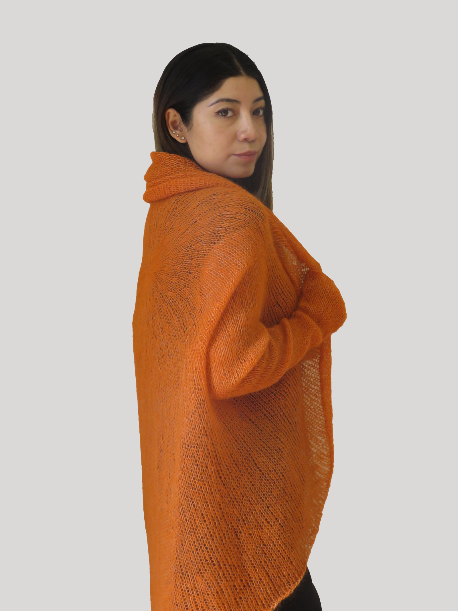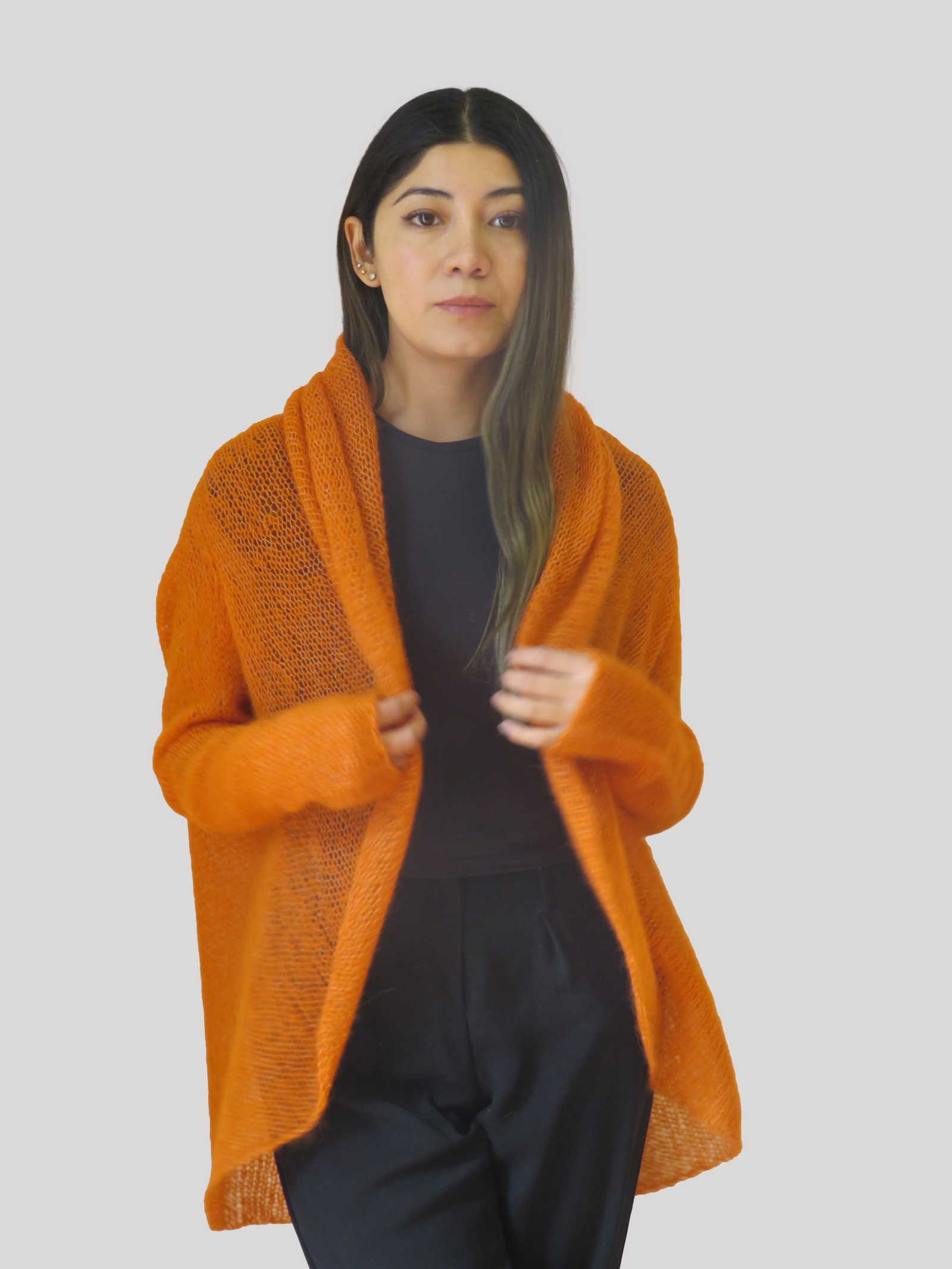 Una prenda cuidadosamente tejida con técnicas artesanales en un diseño innovador en fibra de alpaca