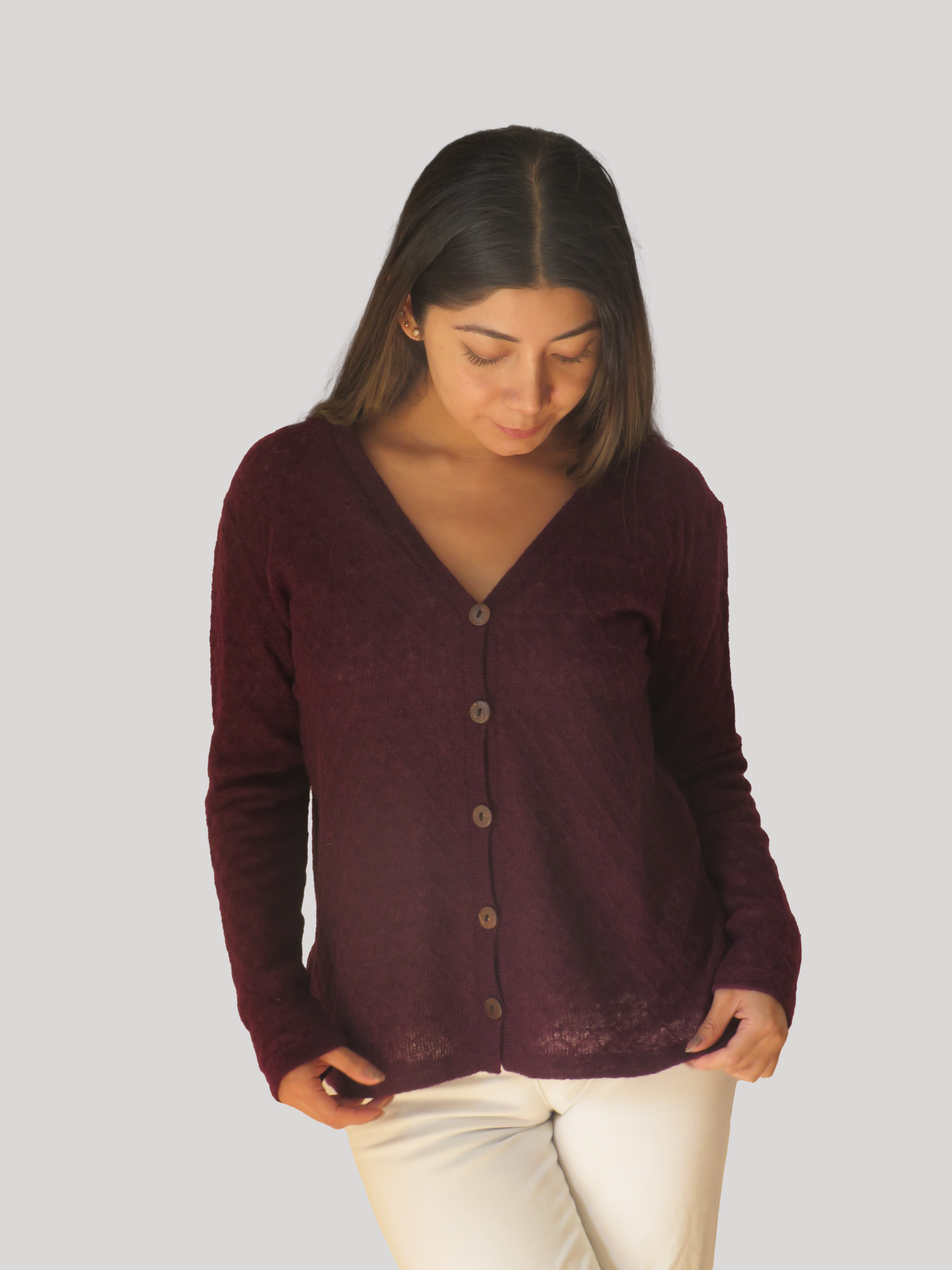 Una prenda cuidadosamente tejida con técnicas artesanales en un diseño innovador en fibra de alpaca